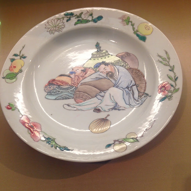 September 26, 2018 Gallery 226 has only two displays. One is a large room constructed in 1985 by Japanese craftsmen and modeled on the main room of the guest residence of a temple outside Kyoto. It uses materials and techniques typical of the Momoyama period (1573-1615) and is notable for its high ceilings and the harmony of the warm tan and brown tones of its wooden beams, tatami mats, and sliding screens. Along one of the room's walsl is a long platform above which hangs a scroll with three large. bold characters that mean "profound sincerity," a state of mind considered important for achieving enlightenment. The room has no furniture. I'm not clear about the purpose to which such a room would have been put. It is easy, however, to imagine a group of priests sitting on the floor in silent meditation while facing the platform and the scroll. The second display, shown in the photo, is of another pair of six-panel screens that were painted in the early 17th...